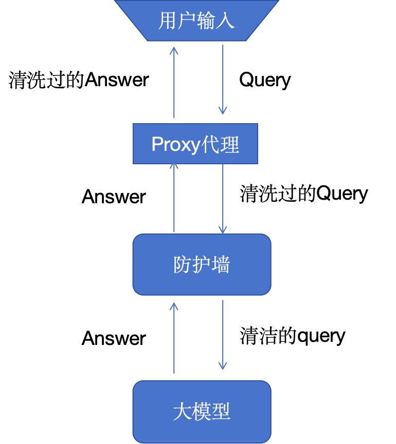 围绕大型语言模型(LLM)的核心安全性至少包含两个关键组件:一是用户组件,我们将其称为用户Proxy代理;二是防火墙,它为模型提供了保护层。