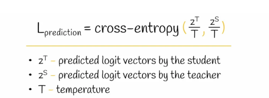 最后,为了使学生模型再现教师模型的输出结果,使用了预测层损失函数。它包括计算两个模型预测的logit向量之间的交叉熵。