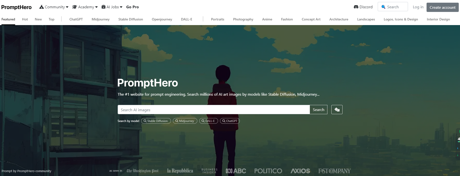 Prompthero 提供了多种文本-图像模型的搜索功能,包括稳定扩散模型、中途模型以及dell-e模型。此外,该平台还支持使用 ChatGPT 的文本提示进行搜索。
